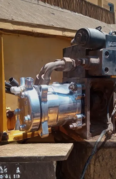We repair hydraulic systems. Já o texto é: We repair hydraulic pumps and hydraulic motors for heavy equipment and trucks, including swing motors for excavators, final drive motors, and hydraulic pumps.
